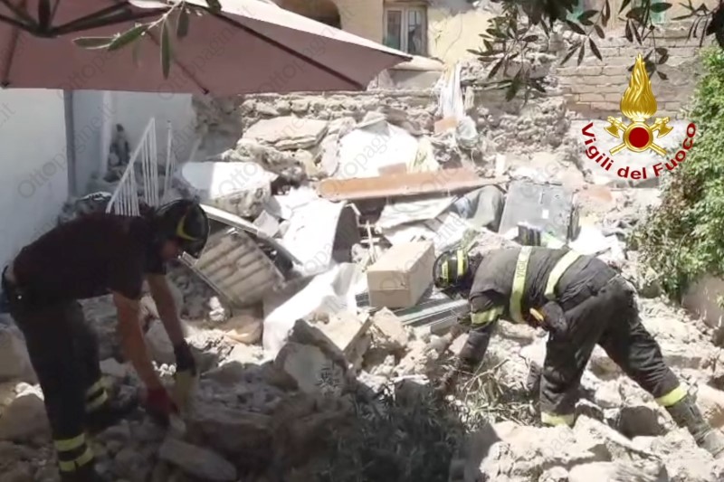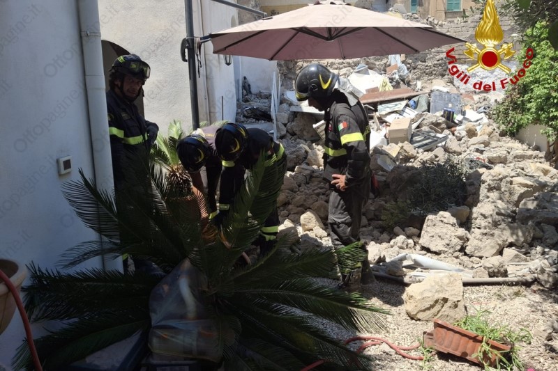 Vigili del fuoco al lavoro per scongiurare la presenza di altre persone sotto le macerie