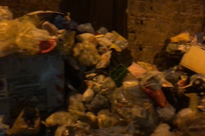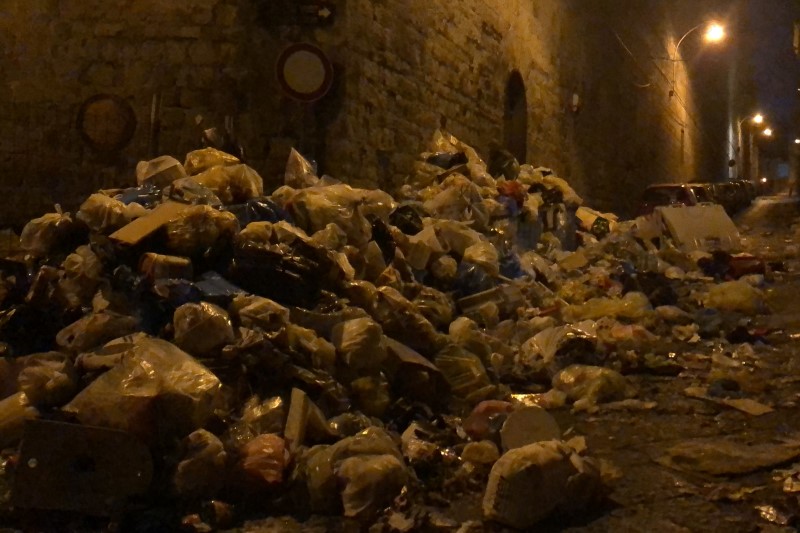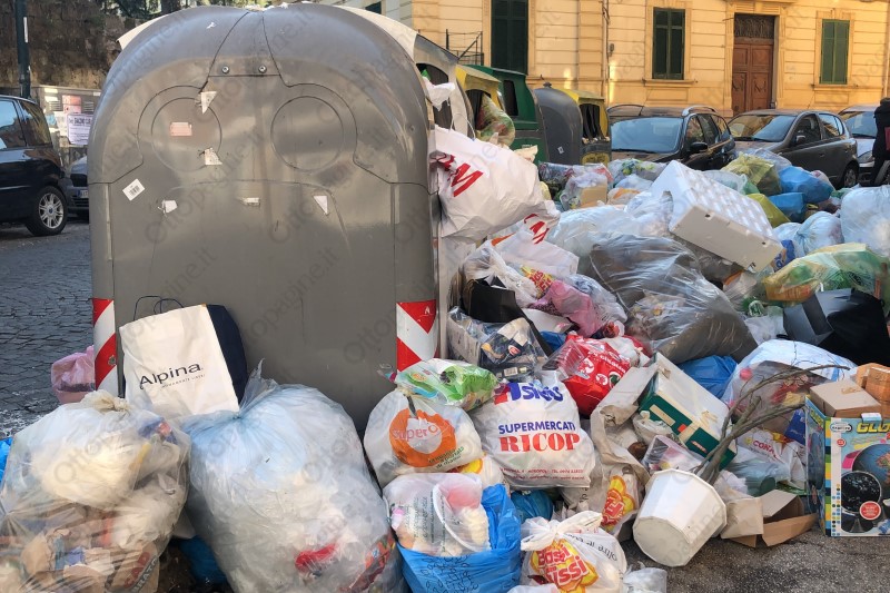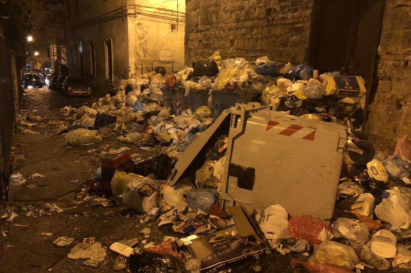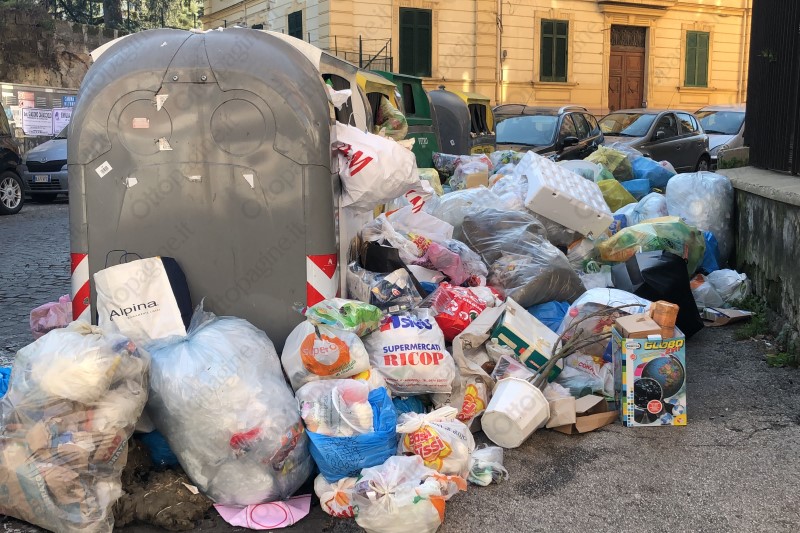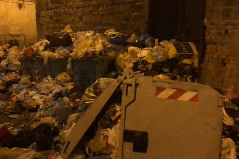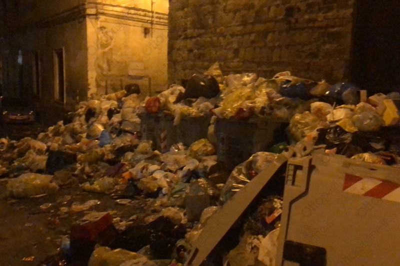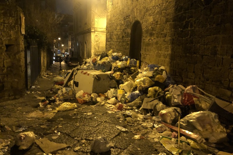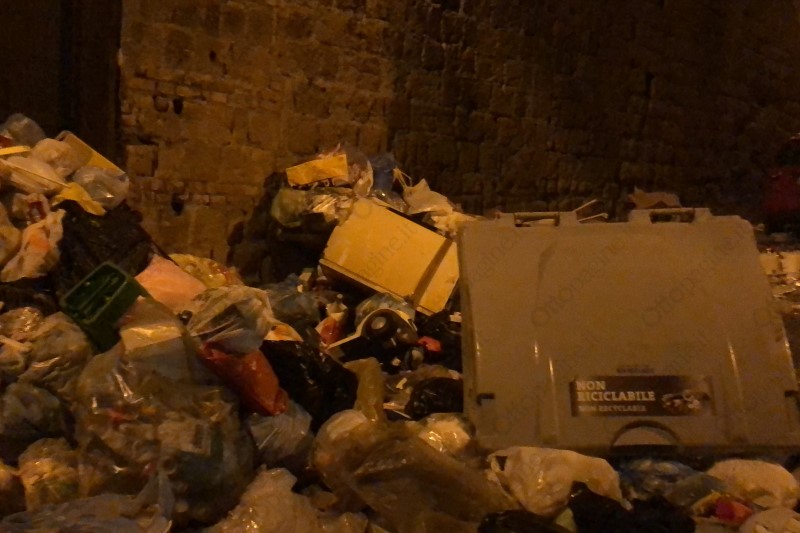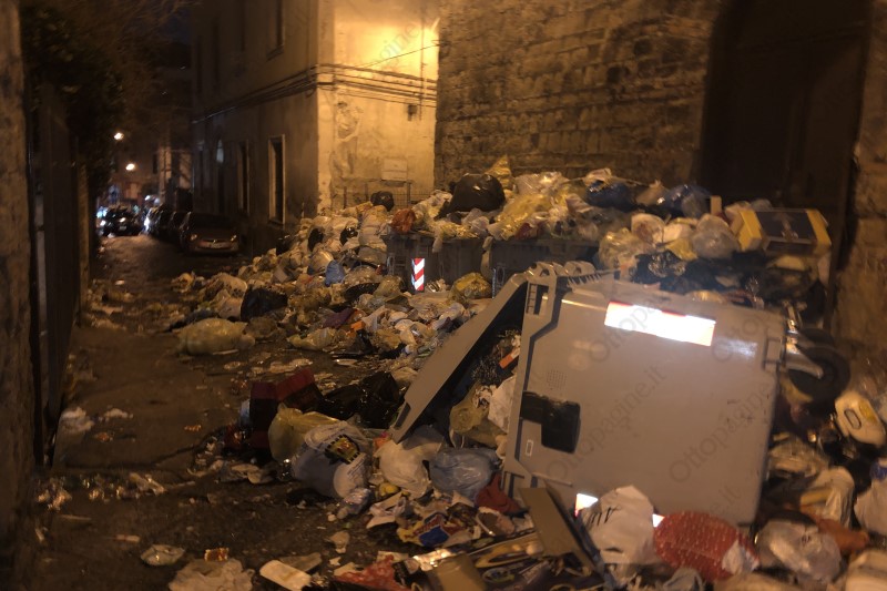 Un cumulo enorme di spazzatura impedisce il passaggio delle auto. Sul posto i vigili e la Polizia