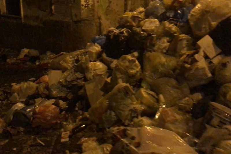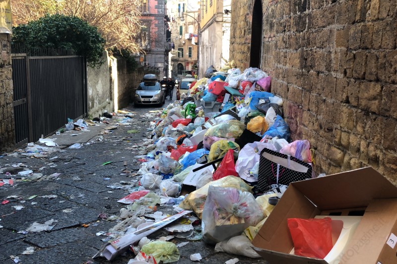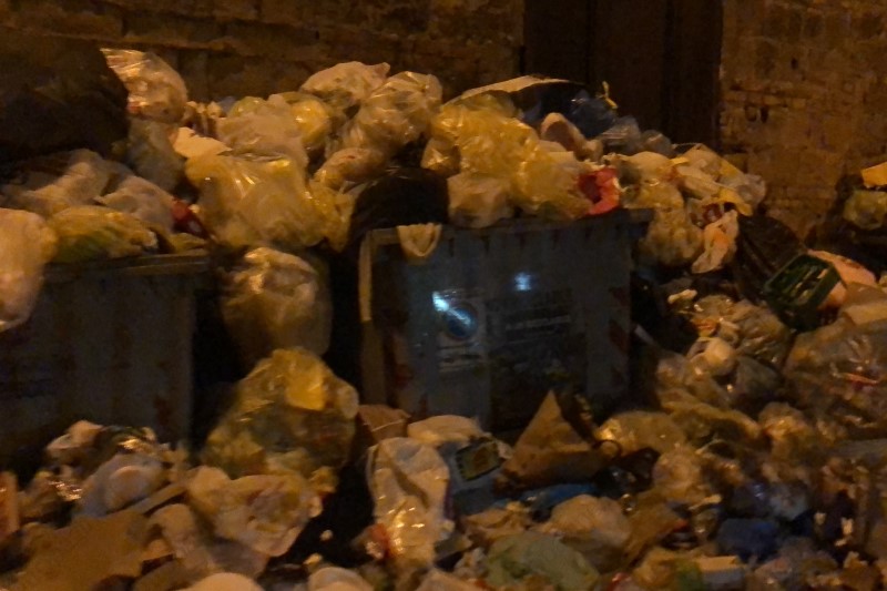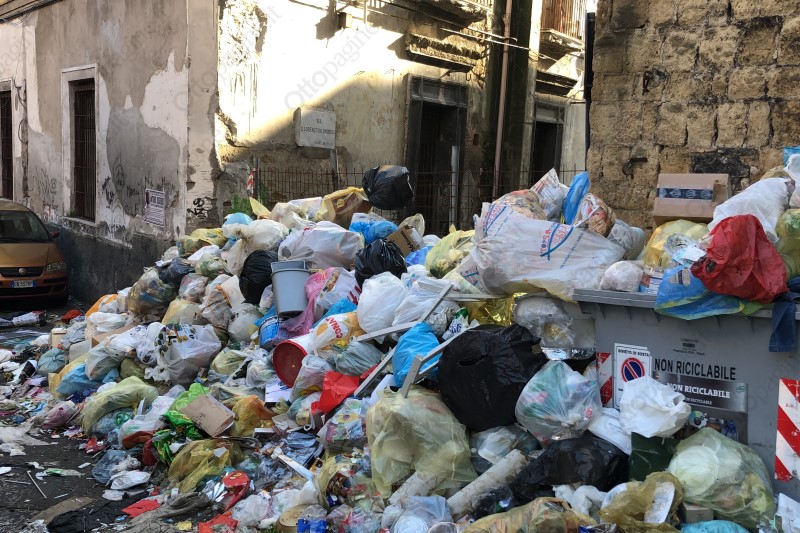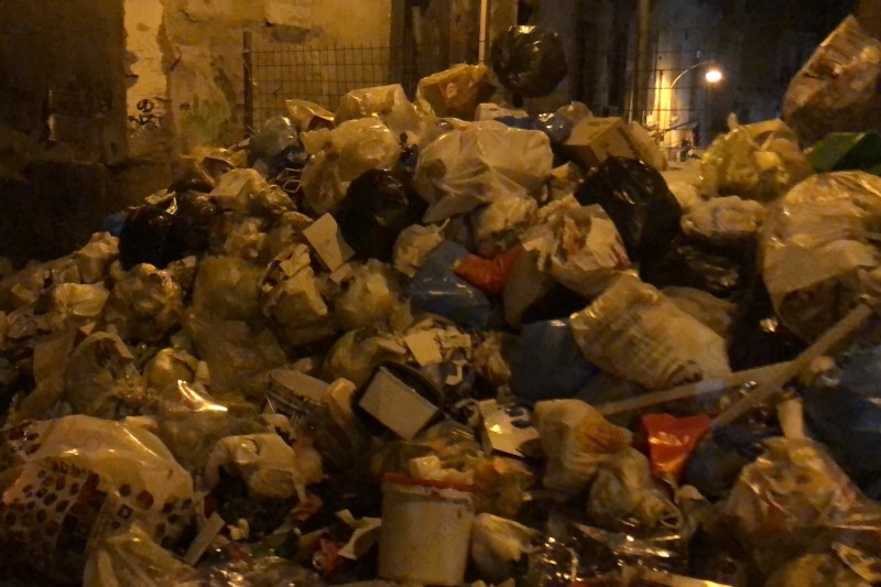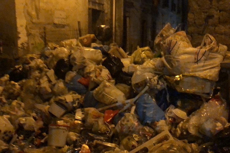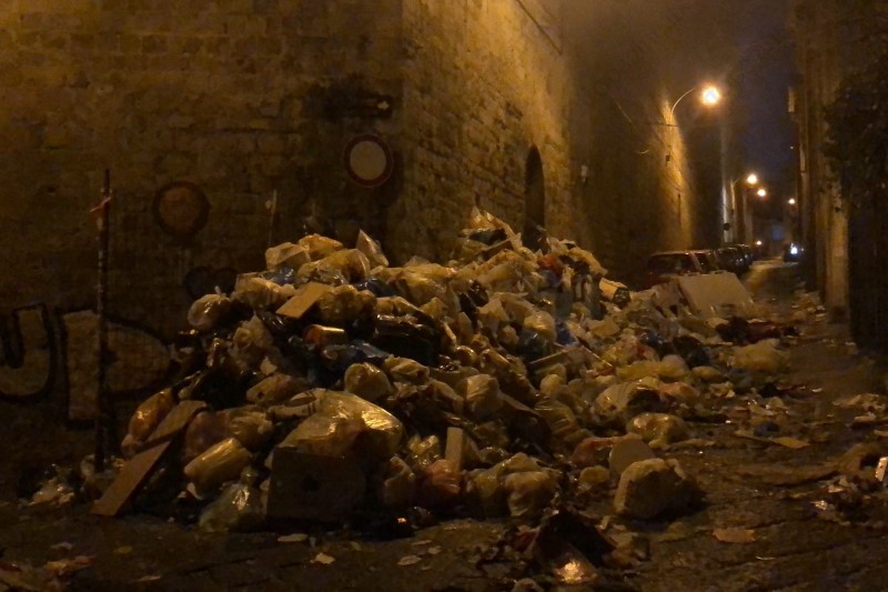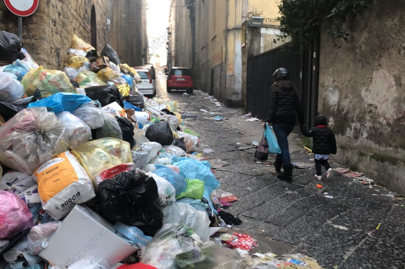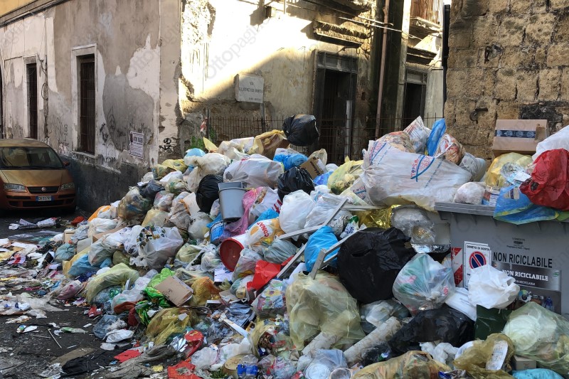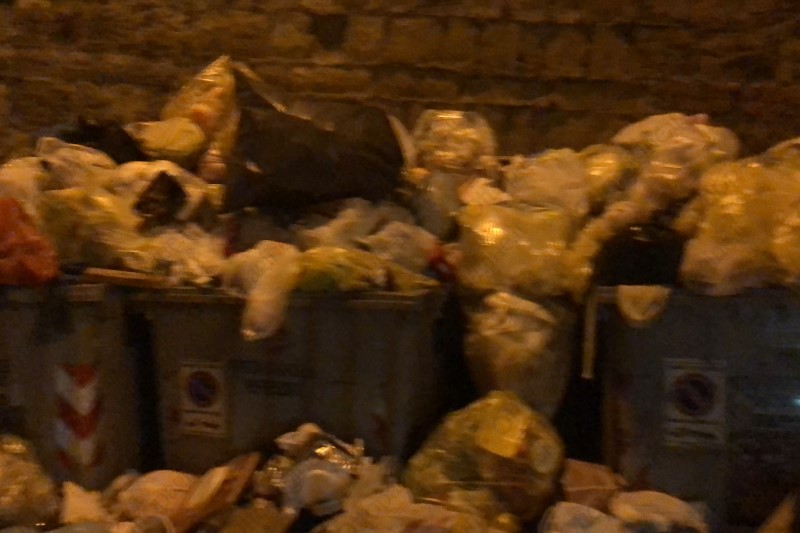 Un cumulo enorme di spazzatura impedisce il passaggio delle auto. Sul posto i vigili e la Polizia