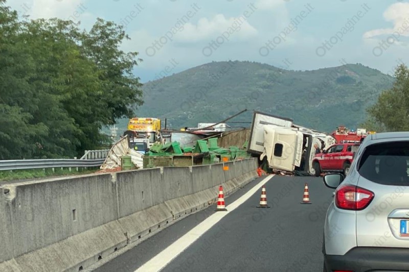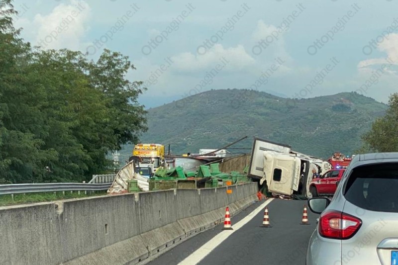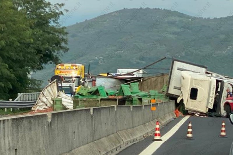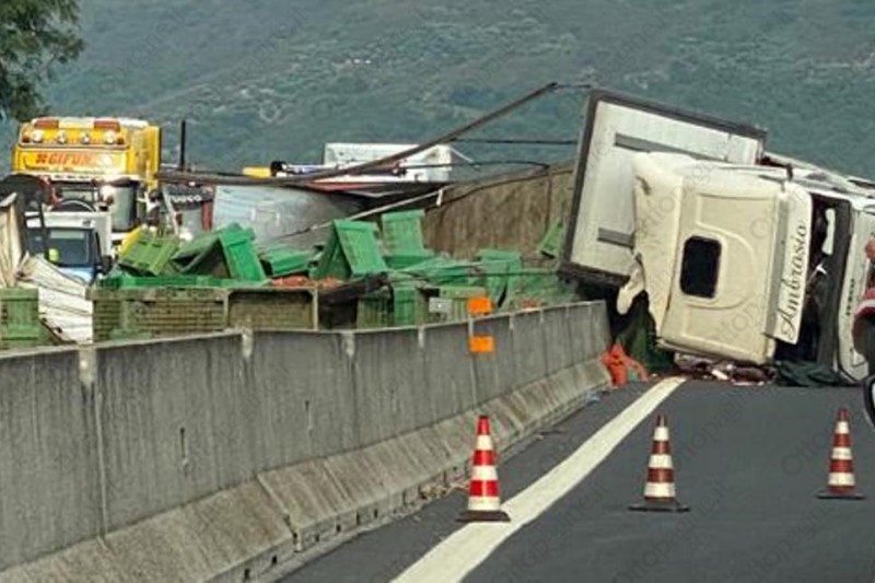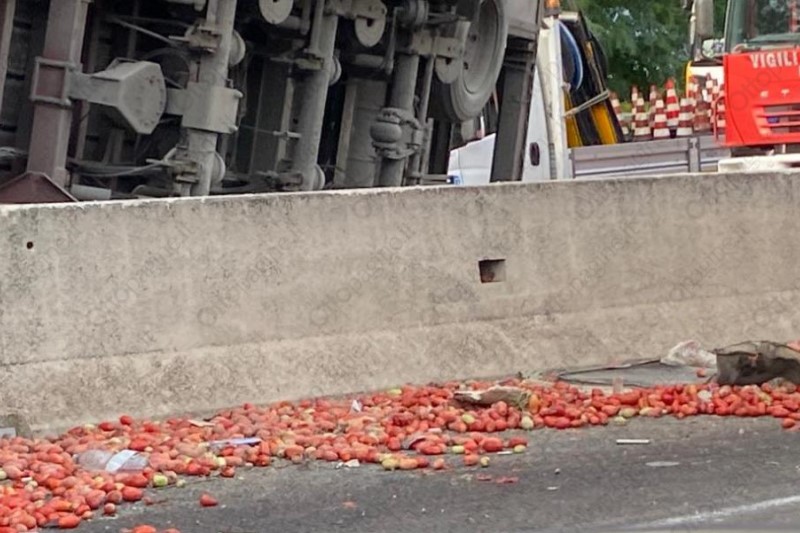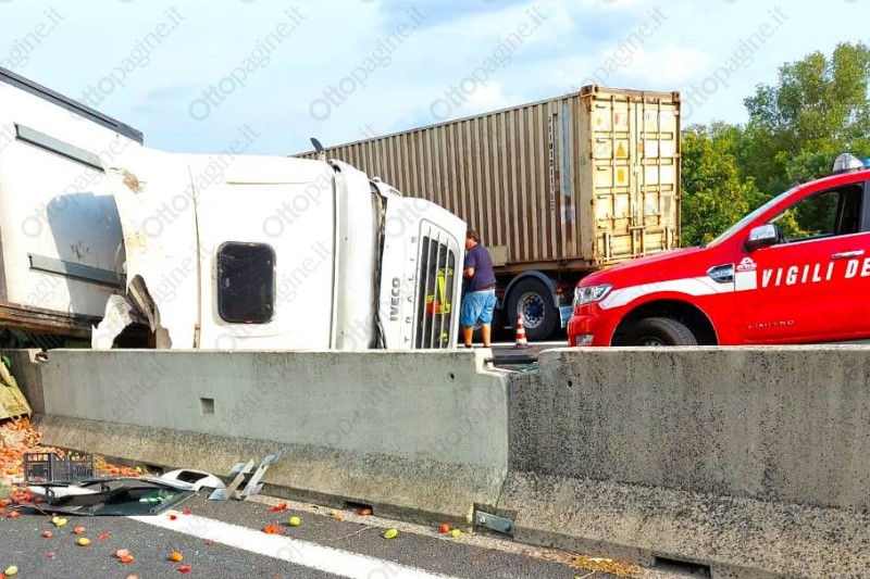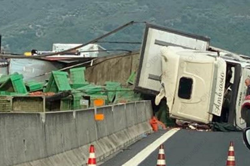 Pomeriggio d'inferno in autostrada, si ribalta tir di pomodori: un morto