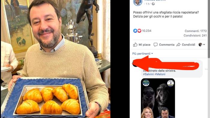 Sorvolando sul solito post social che lo ritrae con quella che definisce “sfogliatella napoletana”, dove napoletana non serve perché la sfogliatella non ha varianti extra partenopee e dunque non può che essere napoletana fa storcere il naso pure il richiamo a Maradona.