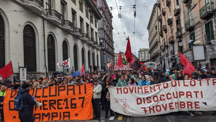A Napoli è partito il corteo della mobilitazione "Mo bast... Insorgiamo!". Circa diecimila persone si sono radunate in Piazza Garibaldi per sfilare nel capoluogo campano. Studenti, lavoratori, disoccupati e pensionati hanno risposto all'appello del Movimento di Lotta - Disoccupati "7 Novembre" e del Collettivo Di Fabbrica - Lavoratori Gkn Firenze per una manifestazione contro rincari, disoccupazione, devastazione ambientale e guerra. Ma sono migliaia gli attivisti giunti da tutta Italia, in particolare da Firenze, Milano, Pavia, Piacenza, Roma e dalle Marche. Alla manifestazione hanno aderito anche gli ambientalisti di Friday for Future.