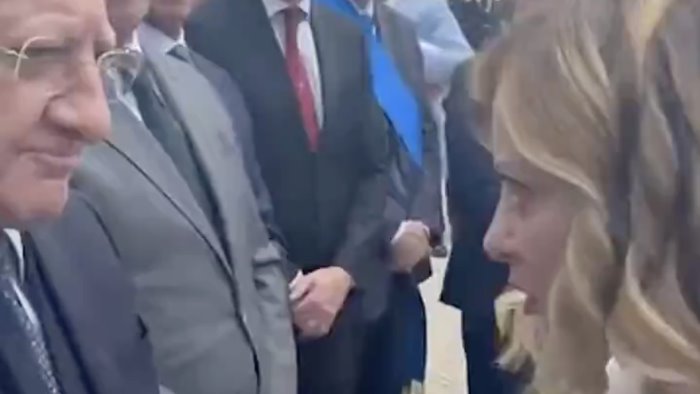 De Luca non si è scomposto, rispondendo "Benvenuta, bene di salute". Meloni ha poi proseguito con i saluti istituzionali prima della visita a Caivano, dove ha inaugurato il centro sportivo "Delphinia".