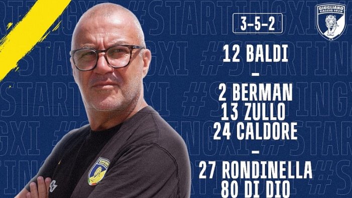 Giugliano (3-5-2): Baldi; Berman, Zullo, Caldore; Rondinella (55' Vogiatzis), Di Dio (78' De Sena), Berardocco, Gladestony, Oyewale (46' Salvemini); Bernardotto, Sorrentino (62' Labriola). All. Di Napoli. A disp. Antonini, Aruta, Ciuferri, Grasso, Oviszach, Russo, De Francesco, Scognamiglio, Stabile, Yabre.