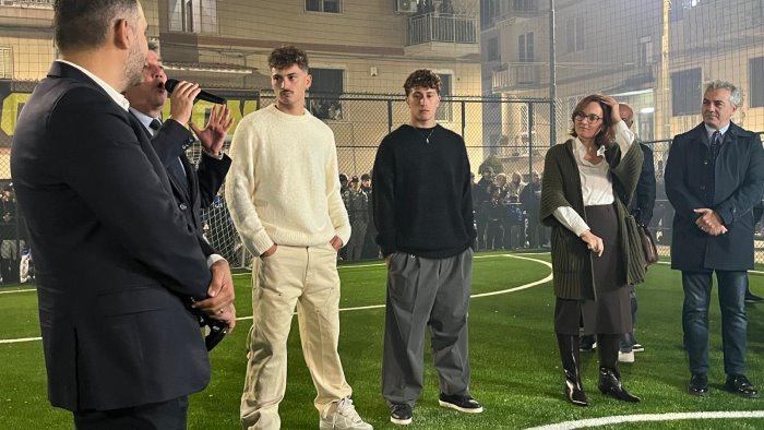 Ora tocca a voi sognare, non costa nulla", la frase scritta su di uno striscione e che rappresenta il testamento lasciato dai fratelli Esposito ai giovani stabiesi. Un gesto dall'elevato valore sociale: l'obiettivo è portare via dalla strada quanti più ragazzi, per evitare che possano imboccare strade pericolose, inseguendo invece i propri sogni. Al taglio del nastro del nuovo campetto erano presenti Salvatore e Sebastiano Esposito, mentre Francesco Pio ha seguito tutto in videochiamata dal ritiro dell'Under 21 italiana. Domenica, tra l'altro, è stata una giornata speciale per Salvatore e Francesco Pio, entrambi in gol nel match vinto 3-0 dallo Spezia al "Menti". Gol che hanno radici solide in quel campetto su cui, da stasera, tanti bambini potranno sognare di ripercorrere le gesta dei fratelli Esposito.