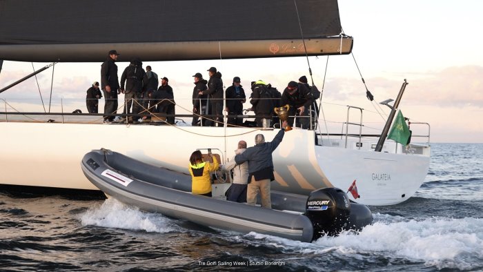 È Galateia, il Wallycento di David Leuschen e Chris Flowers, il primo scafo a tagliare la linea del traguardo della 70ª Regata dei Tre Golfi. Con lo straordinario tempo di 13 ore, 19 minuti e 42 Galateia ha infranto il precedente record di Jethou di Sir Peter Ogden stabilito nel 2023 (15 ore, 30 minuti e 01 secondi). L’imbarcazione ha completato le circa 150 miglia della regata alle 05:54 del mattino di ieri, lasciandosi alle spalle l’intera flotta di Maxi, ORC e Multiscafi, dopo una notte di avvicendamenti in testa con Magic Carpet e di Sir Lindsay Owen Jones, che ha tagliato il traguardo dietro il Wallycento. Terzo sulla linea di arrivo, in tempo reale, è stato il Maxi 72 di Hap Faut, Bella Mente, seguito da un altro Maxi 72, Jolt di Peter Harrison e quindi l’italiana Bullitt, il Wally 93 di Andrea Recordati. Partita venerdì 16 maggio alle ore 16:15 dalla rada di Santa Lucia, con un vento da nordest (Grecale) costante tra i 14 e i 18 nodi e raffiche superiori ai 20, la flotta ha affrontato lo spettacolare itinerario che attraversa i golfi di Napoli, Gaeta e Salerno, con passaggi iconici attorno alle isole di Ischia, Ponza, Capri e Li Galli.La Tre Golfi Sailing Week 2025 è organizzata dal Circolo del Remo e della Vela Italia in collaborazione con lo Yacht Club Italiano, il Reale Yacht Club Canottieri Savoia, IMA, ORC, FIV e UVAI, con il supporto di Rolex TimePiece, Loro Piana, North Sails, Wally Yachts, Banca Patrimoni Sella & C., Ferrarelle, Ottogas, Deloitte, Italia Yachts, Le Axidie, Caffè Borbone, Schenker, Miliare e Consorzio Prosecco DOC.