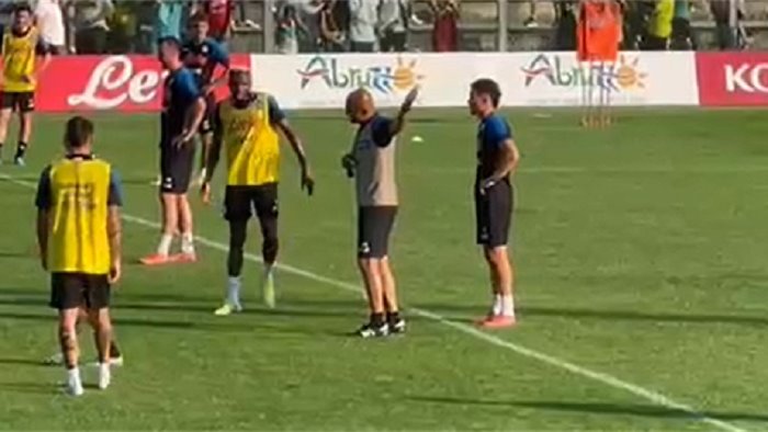 Gli azzurri, nel pomeriggio, dopo una prima fase di attivazione in campo, hanno svolto torello e partita a tema a campo ridotto. Proprio in questa ultima parte dell'allenamento il tecnico azzurro, Luciano Spalletti, ha invitato Victor Osimhen ad allontanarsi dal terreno di gioco a seguito di un diverbio tra l'attaccante e Zambo Anguissa.