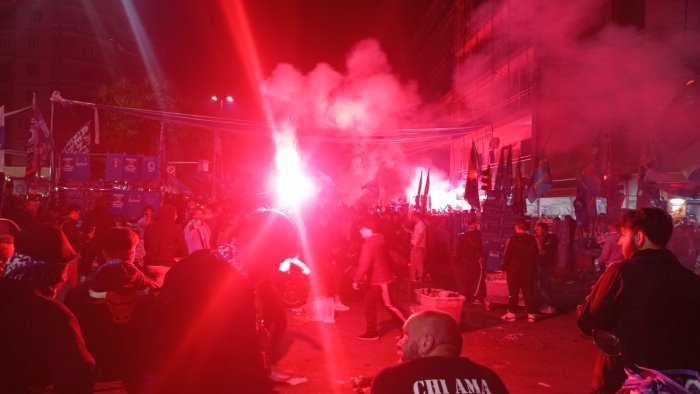 Il terzo scudetto e' particolare per i Quartieri Spagnoli. Perche' sono diventati snodo nevralgico del turismo napoletano, anche e non solo per quella piazzetta a ridosso di via Emmanuele De Deo che ha una parete sulla quale persiste un murale che celebra Diego Armando Maradona, il capitano degli scudetti '87 e '90, diventato negli anni luogo di culto pagano del Pibe de oro. E perche' sono una delle anime ancora autentiche di Napoli, citta' complessa e spesso fraintesa. E nei vicoli a ridosso di via Toledo la festa, preparata da tempo, e si e' consumata in una attesa fatta di trombette, urla strozzate, cori, applausi e clacson suonati a tutto spiano lungo tutta la partita. Poi il boato liberatorio e subito pedarti e fuochi d'artificio che hanno illuminato anche gli angoli piu' bui. Cinque minuti di un piccolo Capodanno posticipato, preludio di un corteo di centinaia di persone verso il lungomare per sfogare la festa solo rimandata domenica scorsa.