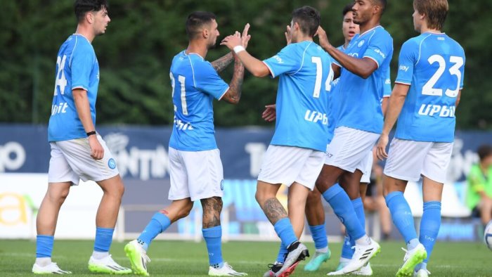Il Napoli campione d'Italia vince la prima amichevole a Dimaro Folgarida contro l'Anaune Val di Non per 5-1. Test ormai tradizionale e anche beneaugurante contro la squadra trentina. Di Politano il primo gol stagionale, su rigore, e poi tante indicazioni positive soprattutto sotto il profilo della linea verde con 4 reti firmate da ragazzi che orbitano nel settore giovanile: Vergara, Cioffi, Coli Saco e Iaccarino. Materiale su cui potrà lavorare proficuamente Garcia, come nelle corde e negli intendimenti del tecnico francese. Chiude al 90esimo Olivera che fissa il 6-1 finale. Prossimo appuntamento lunedì per il secondo test contro la Spal, allorquando sarà anche l'occasione di vedere il battesimo di altri campioni d'Italia con addosso la maglia del tricolore.