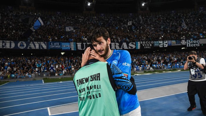 "Sono felice, forza Napoli!". Khvicha Kvaratskhelia esprime la sua gioia in inglese dopo il match con l'Udinese, ma la traduzione della felicità la affida ad un Forza Napoli che corona la sua bellissima serata.