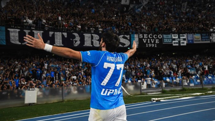 La Georgia batte 4-0 Cipro nel match del Gruppo A di qualificazione a Euro 2024. A Tblisi i georgiani si portano in vantaggio ad inizio secondo tempo con Kiteishvili con un tiro dalla distanza dopo un'azione personale di Khvicha Kvaratskhelia. L'azzurro si accende proprio nella ripresa e al 58' raddoppia con un tocco di punta di destro sull'assist di Chakvetadze. L'attaccante, prima di uscire all'85', si rende ancora protagonista tre minuti prima con un preciso assist per la terza rete di Shengelia. Al 94' arriva il poker georgiano su rigore trasformato da Mikautadze. Khvicha Kvaratskhelia è stato grande protagonista con la sua Georgia nel match di qualificazione a Euro 2024 vinto 4-0 contro Cipro. L'attaccante azzurro, autore di un gol e un assist, è sceso in campo con dei parastinchi che riproducono uno la bandiera della Georgia e l'altro i colori con il logo del Napoli.