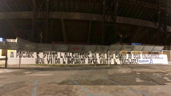 Nella nottata i tifosi della Curva A hanno esposto uno striscione all'esterno dello Stadio Diego Armando Maradona. Dopo l'esonero di Rudi Garcia, sono finiti gli alibi per i calciatori del Napoli secondo i sostenitori azzurri, lo striscione infatti recita: "A pagare è stato l'allenatore, ma sia ben chiaro ad ogni calciatore... non vi dà l'impunità aver vinto il tricolore".