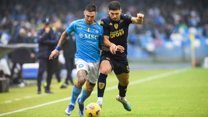 Prosegue la marcia di avvicinamento verso la prima partita del 2024. Il Napoli si è allenato ieri mattina all’Sscn Konami Training Center. Gli azzurri preparano il primo match dell’anno, Torino-Napoli, in programma domenica 7 gennaio alle ore 15 per la 19esima giornata di Serie A. La squadra, sotto la guida di Walter Mazzarri, ha lavorato sul campo 2 iniziando la sessione con riscaldamento e seduta tattica. Di seguito il gruppo ha disputato una partita in famiglia a campo intero. Politano ha svoltoparte di allenamento personalizzato in campo e parte col gruppo. A questo punto la sua presenza in campo è più probabile. Lavoro personalizzato in campo per Gaetano, che invece si ferma e a questo punto resta in dubbio. L'eliminazione della Salernitana in Coppa Italia sposta il derby col Napoli al sabato. La partita del Maradona che seguirà la trasferta col Torino si giocherà sabato 13 invece di domenica 14, sempre alle ore 15.