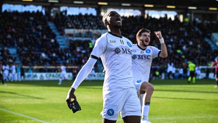 Asse decisivo per il Napoli che - dopo una breve interruzione al 36' per dei problemi alla porta del Sassuolo - confezionerà anche il 3-1: errore di Matheus Henrique e imbucata di Politano per il centravanti nigeriano, ancora lucido nello scavalcare Consigli e siglare la sua doppietta. La squadra di Calzona non si ferma nella ripresa e nel giro dei primi sei minuti sigla altri due gol: il primo ancora a firma di Osimhen, che sul pallone sbagliato in area da Tressoldi viene servito da Kvaratskhelia e indisturbato firma il 4-1; il secondo, quello dello stesso georgiano, che della sinistra si accentra e calcia a giro dove Consigli non può nulla. Sassuolo completamente in balia della squadra di Calzona, che al 75' va a segnare il 6-1, ancora con Kvaratskhelia, letale con il sinistro al volo arrivato sugli sviluppi del corner battuto da Raspadori. Palleggio e gestione nel finale per il Napoli, che aggancia in classifica la Lazio e prova a rilanciarsi nella corsa Champions mentre è notte fonda per il Sassuolo, chiamato a cercare altrove i punti per la salvezza.