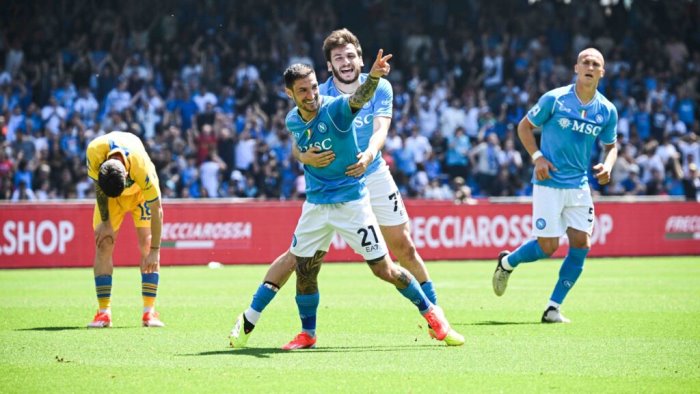 L’uscita dal campo di Matteo Politano non era di natura tecnica: nella ripresa l’esterno azzurro ha accusato un problema al polpaccio e ha chiesto il cambio. Non una buona notizia, soprattutto perché l’ex Inter sta facendo bene. Anche ieri col Frosinone un grande gol. La notizia non è buona, perché il polpaccio è zona pericolosa. Politano sarà da valutare in vistadell’Empoli sabato. Saranno certe, invece, le assenze di Mario Rui e di Rrahmani. Il portoghese è stato espulso nel finale per doppia ammonizione e sarà squalificato.