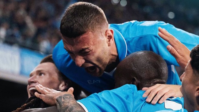 NAPOLI (4-3-3): Meret 6; Di Lorenzo 6.5, Rrahmani 6, Buongiorno 6(19'st Marin 6), Olivera 6 (41'st Raspadori sv); Anguissa 6.5 (13'st Billing 6), Lobotka 6.5 (41'st Gilmour sv), McTominay 7.5; Politano 6.5, Lukaku 5.5 (41'st Simeone sv), Spinazzola 6. In panchina: Turi, Scuffet, Okafor, Ngonge, Hasa, Mazzocchi. Allenatore: Conte 6.5.