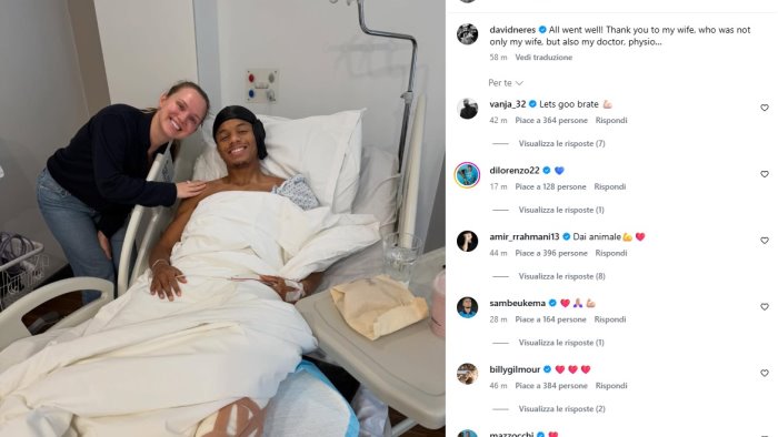 L'esterno del Napoli David Neres è stato operato a Londra stamattina. Lo annuncia lo stesso calciatore brasiliano sul suo profilo Istagram, postando una foto, insieme con la moglie, con la gamba sinistra ingessata dopo l'intervento. "Tutto è andato bene. Grazie a mia moglie che non ero da solo ma anche il mio medico e il fisioterapista". Neres è stato operato al tendine della caviglia sinistra al Wellington Hospital di Londra, dove si è già sottoposto a intervento chirurgico il centrocampista azzurro Gilmour. Ora inizia la lunga terapia per tornare ad allenarsi nella speranza di tornare a giocare tra circa due mesi.
