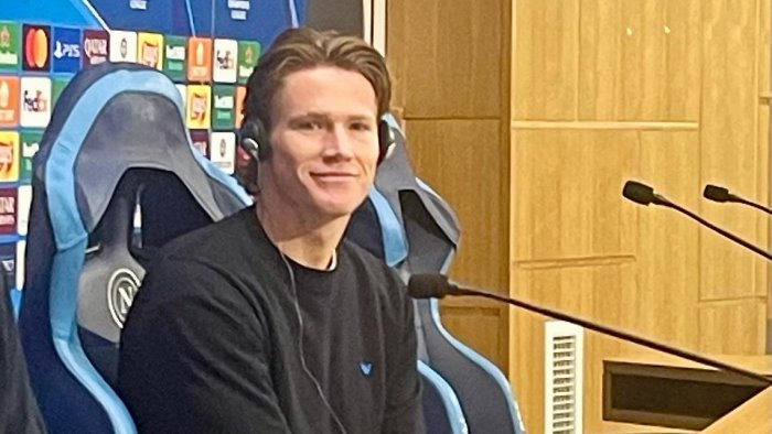 "Come sto? Faccio del mio meglio per recuperare partita dopo partita. È quello per cui siamo pagati. Sono molto grato del supporto dei tifosi dello staff e del club. Speriamo di fare una partita fantastica domani sera in un'atmosfera incredibile". Così Scott McTominay nella conferenza stampa di presentazione di Napoli-Chelsea in programma domani sera al Maradona. "Cosa ci ha detto Conte dopo la Juventus? Di stare concentrati, abbiamo tante partite davanti a noi e cercheremo di continuare a fare sempre meglio. Abbiamo visto gli errori della partita con la Juve. Migliorare si può così come abbiamo fatto negli ultimi 18 mesi", ha detto ancora McTominay.