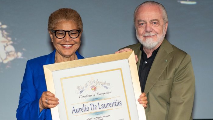 Tra i vari ospiti presenti per la prima statunitense del film "Ag4in", che racconta la conquista del quarto scudetto del Napoli, il Premio Oscar, Steven Zaillian, e la sindaca di Los Angeles Karen Bass. Quest'ultima ha conferito al presidente De Laurentiis la cittadinanza onoraria, riconoscimento particolarmente prestigioso oltre che raro.