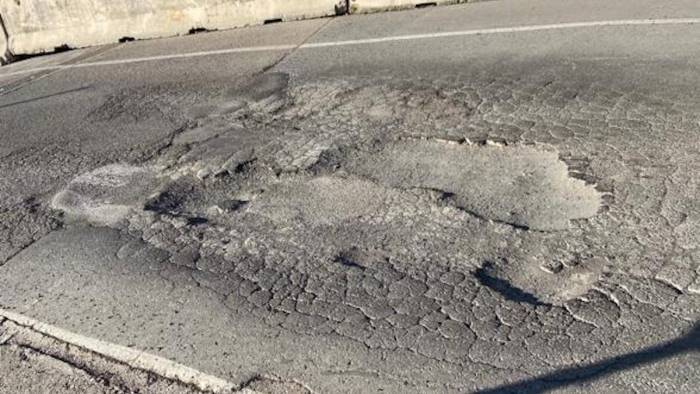 Crepe, buche, e asfalto spaccato, la carreggiata è un campo minato di dissesti e quel che è peggio è che la situazione va avanti da tempo.