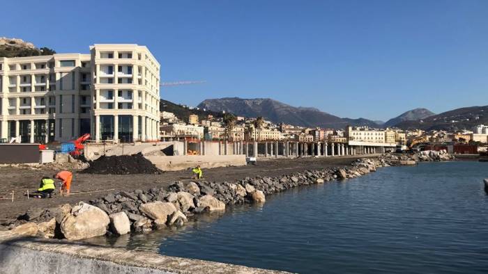 Lavori che mostrano un nuovo volto di quella Salerno immaginata tanti anni fa dall'ex sindaco Vincenzo De Luca. Si delinea, infatti, la nuova passeggiata ovest che consentirà il collegamento diretto tra il lungomare e il molo Manfredi. I lavori continueranno nei prossimi giorni per permettere il completamento della nuova opera.