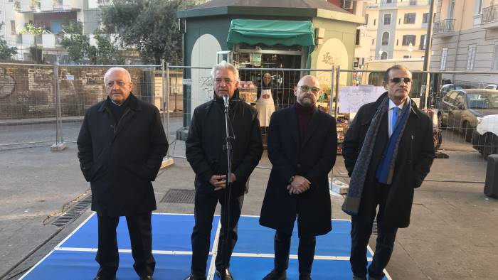Serviranno 180 giorni per completare il nuovo mercato rionale di via Piave-piazza Cavalieri Vittorio Veneto a Salerno. Questa mattina, alla presenza del governatore della Campania, Vincenzo De Luca, del sindaco Vincenzo Napoli, dell’assessore Dario Loffredo e del consigliere regionale Franco Picarone, hanno preso il via i lavori. «Avendo deciso di tenere qui il mercato, bisognava riqualificarlo. Bisognava avere servizi igienici, servizi idrici, copertura dei punti vendita e un posto di polizia municipale, essenziale anche per imporre a tutti di avere comportamenti civili», ha sottolineato il governatore della Campania, "rivestendo" i panni di sindaco di Salerno, carica ricoperta a lungo in passato.