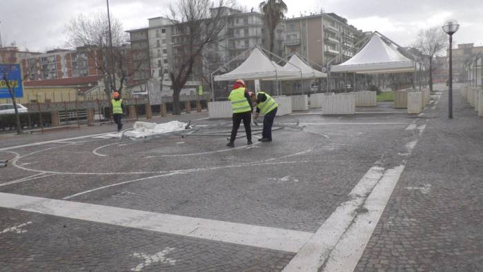 La proposta è stata portata avanti negli ultimi giorni dal consigliere Rocco Galdi, presente sul lungomare nella giornata di ieri, mentre gli addetti ai lavori procedevano con le operazioni di smontaggio. Originariamente le strutture erano state messe sul lungomare cittadino a disposizione della comunità bengalese e senegalese per la vendita di prodotti. Una situazione che non è mai stata sfruttata dalla comunità perchè considerata "lontana dalla realtà economia della città". I cittadini bengalesi e senegalesi, infatti, erano stati allontanati dall sottopiazza della Concordia per essere spostati a Torrione. Una decisione che non è mai stata accettata.