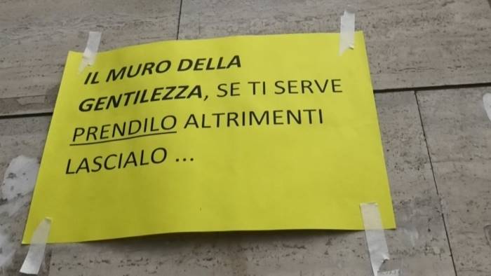 Ancora una volta la solidarietà coinvolge e rende protagonisti i cittadini di Pastena. In questi giorni, nel popoloso quartiere della zona orientale della città è nato il "Muro della gentilezza", una nuova iniziativa volta ad aiutare i senza tetto e le persone che hanno bisogno di aiuto ma che non sono in grado di riceverlo o di chiederlo.