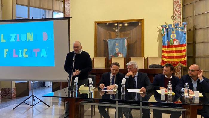 A scuola arrivano le “Lezioni di Felicità: Musica e Bullismo, un rapporto pericolosamente affascinante”, temi attuali e sensibili trattati sulla scia della musica. Presentata in mattinata la nuova iniziativa proposta dal consigliere comunale Fabio Polverino e Marco Montefusco, Presidente di Studio 76 Production, associazione ideatrice del progetto. L'iniziativa è patrocinata dall'assessorato al commercio del comune di Salerno, Dario Loffredo e l'assessorato alle Politiche Sociali, Giovanni Savastano. Presente, all'incontro, anche l'onorevole Piero De Luca e il sindaco Vincenzo Napoli.