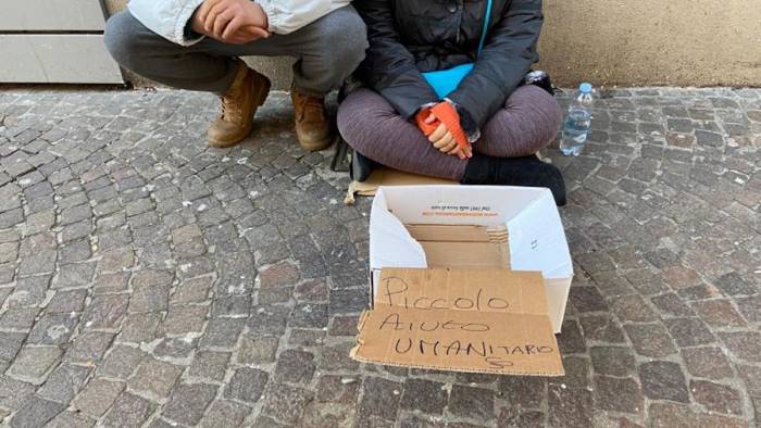 Il loro cartello chiede di dare un “piccolo aiuto umanitario”, pochi spicci o qualcosa da mangiare per rendere una giornata migliore in attesa di far passare il gelo della nottata.