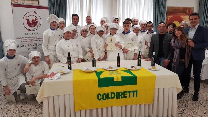Gli studenti, divisi in cinque squadre, si sono cimentati nella realizzazione di piatti partendo dalle caratteristiche di oli di eccellenza del salernitano. A rafforzare il punteggio è stata anche la capacità di esaltare il patrimonio agroalimentare della propria terra. La gara si è svolta a conclusione di una tre giorni di formazione dedicata alla conoscenza delle proprietà organolettiche e qualitative dell’olio extravergine di oliva. Gli altri studenti che hanno partecipato alla gara di cucina sono stati Federico Artese, Giuseppe D'Amico, Enrico Giglio, Andrea Landi, Alfredo Memoli, Christian Napoli, Gabriele Noschese, Davide Paone, Gerardo Pio Perla, Giada Procida, Giuseppina Rizzo, Alfonso Troisi, Ernesto Vicinanza. In giuria Maria Luisa Ambrosino, il consigliere Unaprol Angelo Petolicchio, l'agrichef Michelangelo Corrado, l'esperta Giovanna Esposito, il professor Cosimo Paesano. A consegnare gli attestati è stato il direttore di Coldiretti Salerno, Enzo Tropiano.