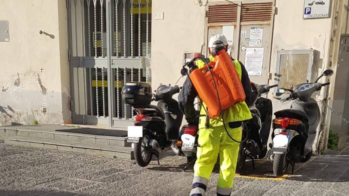 Nel comune di Atrani, invece, è stato effettuato questa mattina un primo intervento di sanificazione del paese volto a contrastare la diffusione del Coronavirus. Gli operatori sono al lavoro per disinfettare e sanificare le strade principali del borgo più piccolo d’Italia. Questa mattina sono stati sanificati Largo Orlando Buonocore, Piazzale Marinella, Piazza Umberto I e via dei Dogi. Durante la giornata di domani l’intervento interesserà tutti i vicoli del paese. Gli uffici comunali sono altresì puliti e disinfettati ogni giorno e nella giornata di oggi si provvederà ad un ulteriore intervento di sanificazione.