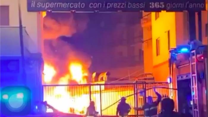 È stato letteralmente avvolto dalle fiamme il deposito del supermercato "Sole 365" situato in via Settimio Mobilio a Salerno. È accaduto questa sera intorno alle 18. Paura tra i tanti residenti che hanno immediatamente chiamato i vigili del fuoco. Sul posto sono intervenute sei squadre dei caschi rossi che, per cercare domare le fiamme nel più breve tempo possibile, hanno lavorato sia da via Mobilio che dal lato di via Vinciprova. Gli agenti della polizia locale hanno provveduto a interrompere la circolazione lungo via Mobilio dove sono giunte anche divese pattuglie dei carabinieri. A preoccupare soprattutto la vicinanza dei palazzi.