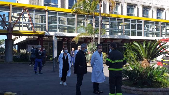 Un momento breve ma emozionante, dall'altissimo valore simbolico. Questa mattina infatti i vigili del fuoco del comando provinciale di Salerno hanno fatto tappa nel cortile dell'ospedale "Ruggi d'Aragona".