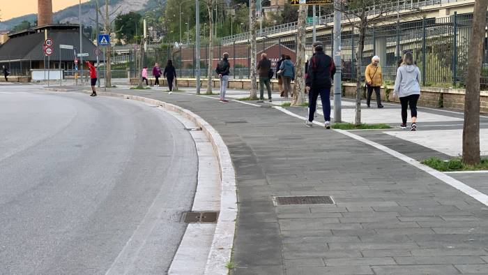 Runner, persone a passeggio per quella che è stata la prima vera uscita - seppur contingentata e in orario ridotto - per i salernitani come per gli altri cittadini campani.