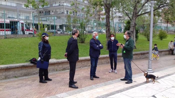 Sopralluoghi in diverse zone della città per monitorare il rispetto delle norme per il contenimento del coronavirus. Il sindaco di Salerno Vincenzo Napoli, accompagnato dagli uomini della polizia municipale, hanno effettuato verifiche presso il cimitero cittadino, particolarmente frequentato in occasione della festa della mamma, al Parco dell'Irno e Parco Pinocchio, dove in questi giorni staziona un'ambulanza della Croce Rossa per i viaggiatori provenienti in bus da fuori regione, ed infine al Corso, sul lungomare e alla spiaggia di Santa Teresa.