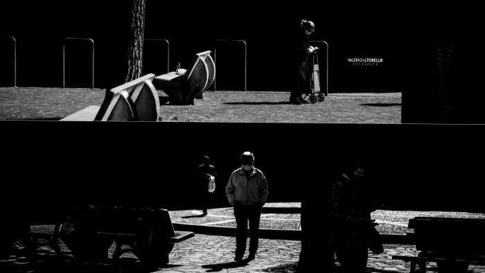 “Tra la fase uno e la fase due sono cambiate molte cose, ma non la solitudine. Prima ti ritrovavi da solo in strada mentre andavi a fare la spesa e poco altro. Con la fase due c’e`, invece, quella che io chiamo “solitudine sociale”, forse anche peggio della prima - racconta Valerio - Quasi un’evoluzione della stessa, in un contesto nel quale la piazza, invece, e` sempre stata sinonimo di scambio di idee, interazione e rapporti..” spiega il giovane fotografo.