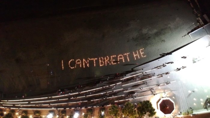 “Abbiamo voluto esprimere solidarietà alle proteste divampate negli Usa in seguito al barbaro omicidio di George Floyd. Una solidarietà collettiva e condivisa, suggellata da un applauso spontaneo partito dalle persone presenti sulla spiaggia di Santa Teresa, molte delle quali hanno contribuito alla realizzazione della scritta”, il messaggio della squadra. Sulla sabbia il messaggio luminoso “I Can't Breathe”.