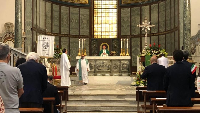 Una celebrazione solonne quella del Vescovo Andrea Bellandi, alla presenza di una chiesa quasi piena del Prefetto di Salerno, Francesco Russo, del sindaco di Cava de'Tirreni Vincenzo Servalli, del vicesindaco di Salerno Eva Avossa e della moglie e figlia del medico di base Antonio De Pisapia, venuto a mancare nel mese di aprile, proprio a causa del coronavirus.