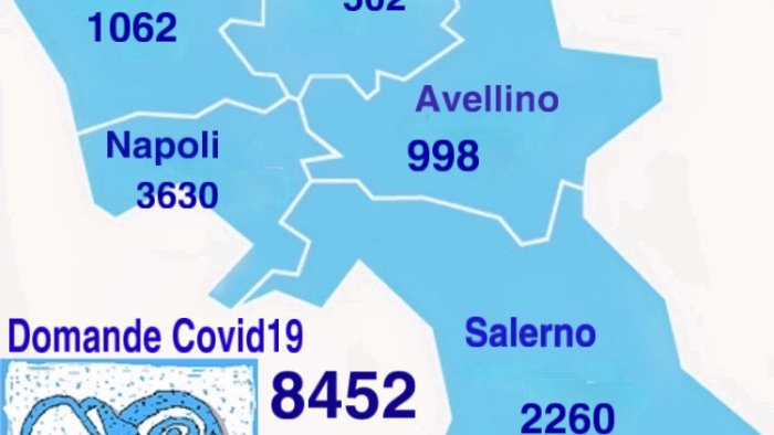 Totale protocollate 8452: Avellino 998, Benevento 502, Caserta 1062, Napoli 3630,Salerno 2260.