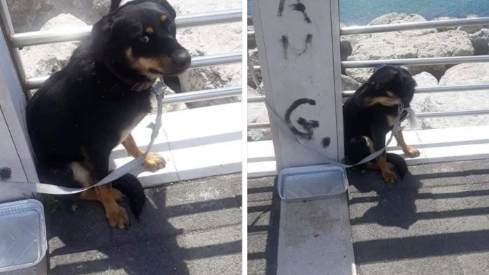 Continuano gli abbandoni estivi. Questa volta, però, un cagnolino non è stato abbandonato in una campagna, in un terreno lontano dagli occhi di molti o sul ciglio della strada. Un cagnolino è stato abbandonato, probabilmente in pieno giorno o alle prima luci dell'alba, sul "pennello" di Salerno. In quel tratto di strada che porta al porto salernitano, è stato notato un cagnolino legato alla ringhiera e con vicino una sola ciotola d'acqua.