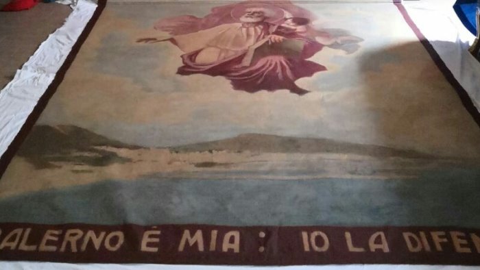Ritorna restaurato il Panno di San Matteo al Duomo di Salerno. La consegna al parroco don Michele Pecoraro è stata effettuata dalla restauratrice Daniela Mellone della RE.CO.ART di Montecorvino Rovella, ditta accreditata dalla Soprintendenza ABAP di Salerno e Avellino diretta da Francesca Casule.