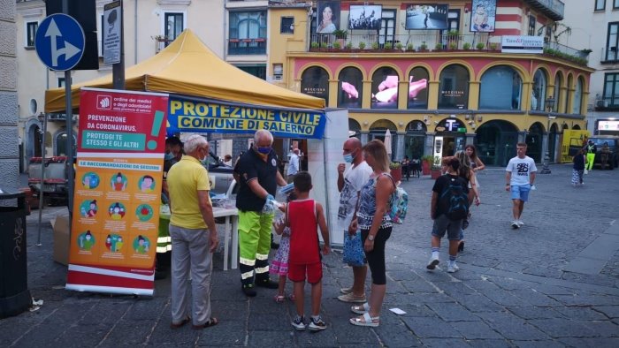 Il Comune di Salerno ha completato con pieno successo la prima parte dell'operazione di distribuzione gratuita di mascherine organizzata dalla Regione Campania nelle località più frequentate e nei luoghi della Movida nelle giornate ferragostane. Il Nucleo di Protezione Civile e L'Humanitas hanno distribuito, tra il 14 ed il 15 agosto, oltre diecimila mascherine.