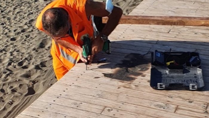 Interventi di manutenzione sul Lungomare cittadino, sono in corso da parte del comune di Salerno. Al via la sostituzione di alcune doghe del solarium di Santa Teresa vanadalizzato e la riparazione degli schienali di alcune panchine.