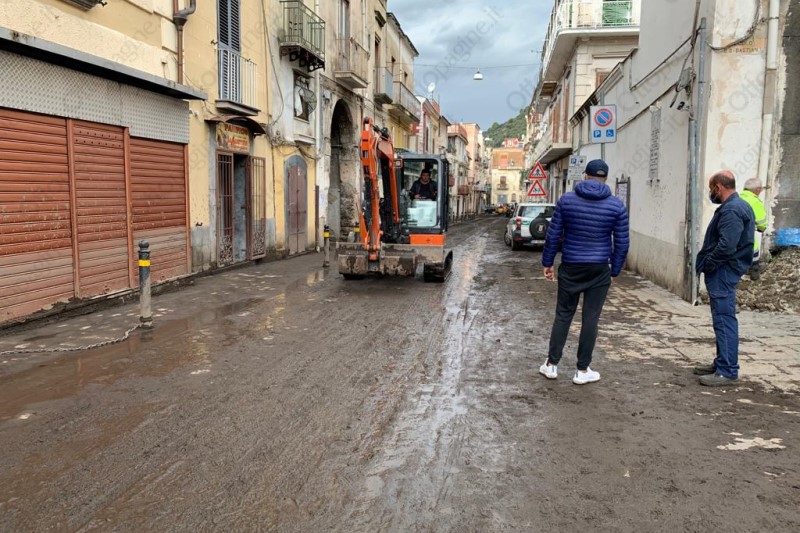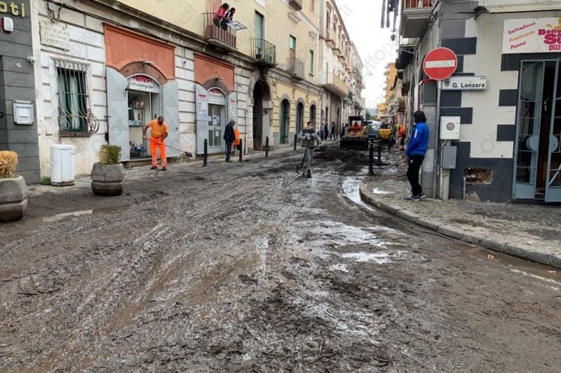 Sarno si risveglia in una valanga di fango. Le strade sono sommerse da detriti trascinati a valle dal maltempo. Si è lavorato tutta notte per cercare di ripulire le strade e mettere in sicurezza le aree maggiormente colpite, in alcune zone è stata ordinata anche l’evacuazione di diversi cittadini. Continuano anche in mattinata le operazioni di soccorso da parte dei vigili del fuoco e protezione civile, in mattinata anche un sopralluogo del primo cittadino Giuseppe Canfora nei luoghi invasi dal fango. Il sindaco ha richiesto lo stato di calamità naturale. Ieri sera, due anziani sono rimasti bloccati in un sottopasso di via Acquarossa all’interno della loro autovettura. A soccorrerli un automobilista. Le scuole nel comune resteranno chiuse anche domani.