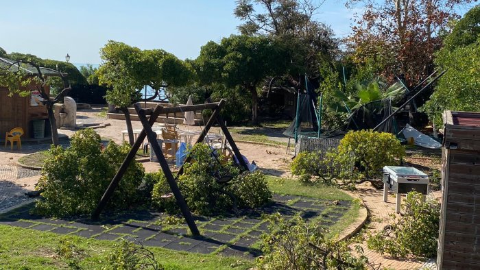 Intanto, in città, l’unica zona che porta ancora i segni del passaggio della tromba d’aria è il parco giochi di Torrione. Si affaccia sul mare, ed è uno dei punti storici della città che si popola, generalmente, nei fine settimana. Ogni salernitano, in età infantile, è passato dallo storico parco giochi di via Lungomare Tafuri. Sette giorni fa, però, l’ira del vento l’ha completamente distrutto. La maggior parte degli alberi che rendevano armonioso il parco sono caduti, abbattendosi sulle giostrine per i più piccoli ma anche sul chiosco presente all’interno. Ingenti i danni all’attività. Danni che devono essere ancora quantificati.