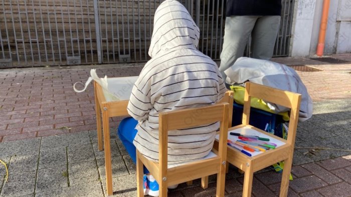 Immagine simbolo di questa protesta quella di un bambino intento a colorare all'esterno della scuola "Matteo Mari", seduto al suo banchetto, davanti ai cancelli serrati per l'ennesima volta.