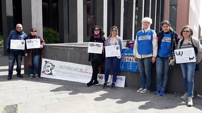 Dunque, mentre i legali delle associazioni animaliste saranno in aula in camera di consiglio (in quanto rito abbreviato), dalle ore 11.30 rappresentanti di DPA Onlus, Animalisti Italiani, Lega Nazionale per la Difesa del Cane, OIPA, ANPANA, Dalle Zampe al Cuore - Associazione Zoofila Rocchese, Gli Invisibili di Mamma Anna, Una Zampa per Amico, Ti salvo con il cuore - Associazione Animalista Sarnese, Associazione 4 Zampe For Ever, Qua la Zampa! San Marzano ed Associazione Zoofila Nocerina, saranno presenti con un sit-in nello spazio antistante la Cittadella Giudiziaria, provvisti di striscioni, cartelloni ed un fiocco rosa intorno al braccio in ricordo di Chicca, diventata simbolo di tutti gli animali vittime dell'uomo.
