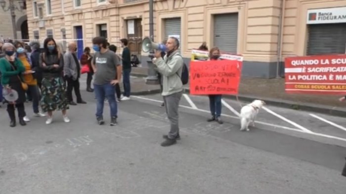 Sindacati, genitori e alunni in piazza Amendola per di "no" alla chiusura delle scuole. E' il secondo giorno di proteste per la città di Salerno. Dopo una giornata, quella di ieri, turbolenta, a causa delle manifestazioni pacifiche messe in campo dai commercianti e imprenditori, questa mattina è toccato alle scuole.