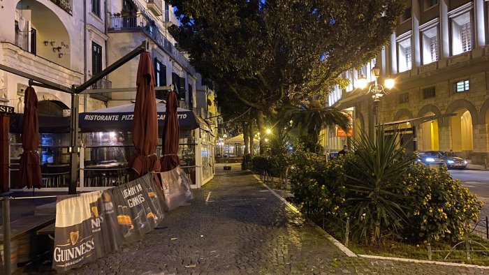 Sono le 18 ma sembra notte fonda. E’ iniziato oggi il primo giorno con le nuove misure anti-covid del nuovo dpcm firmato dal premier Giuseppe Conte. Sono le 18 ma molti locali, in segno di protesta, hanno deciso di non aprire. Scattato il “coprifuoco” per i gestori via Roma, una delle centralissime zone della città, è spettrale. Solo macchine che rientrano e poche persone che, imperterrite, passeggiano per strada.